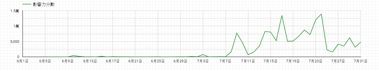 各種加碼券在社群上的整體聲量是首要觀察重點,而由於各券的推出時間點不同。因此,我們將分析時間時間拉長到 6 月初至 7 月底來觀看各券在不同時間點的聲量表現。